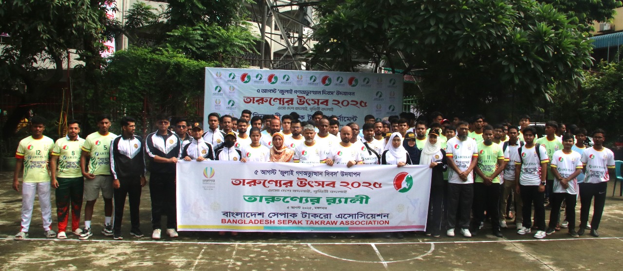 তারুণ্যের উৎসবে র‌্যালি ও জুলাই গনঅভ্যুত্থান দিবস উপলক্ষ্যে টুর্নামেন্টের আয়োজন করে বাংলাদেশ সেপাক টাকরো অ্যাসোসিয়েশন। আজ মঙ্গলবার সকাল ৭ ঘটিকায় ক্রীড়া সংগঠক ও খেলোয়াড়দের নিয়ে এক বর্ণাঢ্য র‌্যালির মাধ্যমে দিনের কার্যক্রম শুরু হয়।
