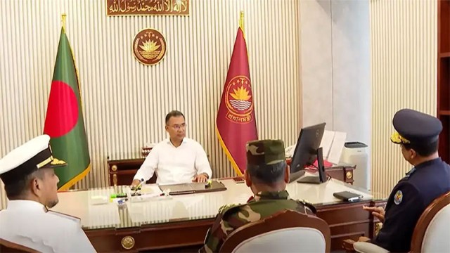 প্রধানমন্ত্রী তারেক রহমানের সঙ্গে সৌজন্য সাক্ষাৎ করেছেন তিন বাহিনীর প্রধান। বৃহস্পতিবার (১৯ ফেব্রুয়ারি) সাড়ে ১০টায় সচিবালয়ে এ সাক্ষাৎ হয়। এদিকে, দ্বিতীয় দিনের মতো আজ সচিবালয়ে গেছেন প্রধানমন্ত্রী তারেক রহমান। এদিন ফ্যামিলি কার্ড নিয়ে আন্তঃমন্ত্রণালয় বৈঠকে যোগ দেবেন তিনি। বৃহস্পতিবার (১৯ ফেব্রুয়ারি) সকালে সচিবালয়ে প্রবেশ করেন তিনি।